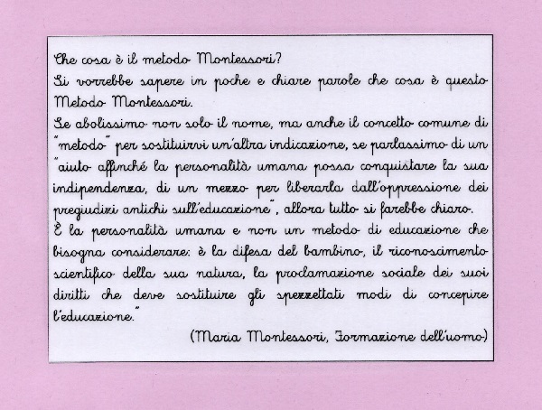 E per concludere una sintesi di cosa è il metodo Montessori: