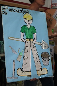 Laboratorio di archeologia in classe. I bambini, guidati dalle MARCHEologhe Francesca e Giusy dell’associazione “Meridiana s.r.l.”, hanno sperimentato in cosa consiste uno scavo archeologico. Partendo dalle tecniche per individuare un sito antico, hanno proceduto poi allo “scavo” e al disegno dei reperti rinvenuti. L’archeologia intesa come memoria del passato e come ricostruzione della propria storia.